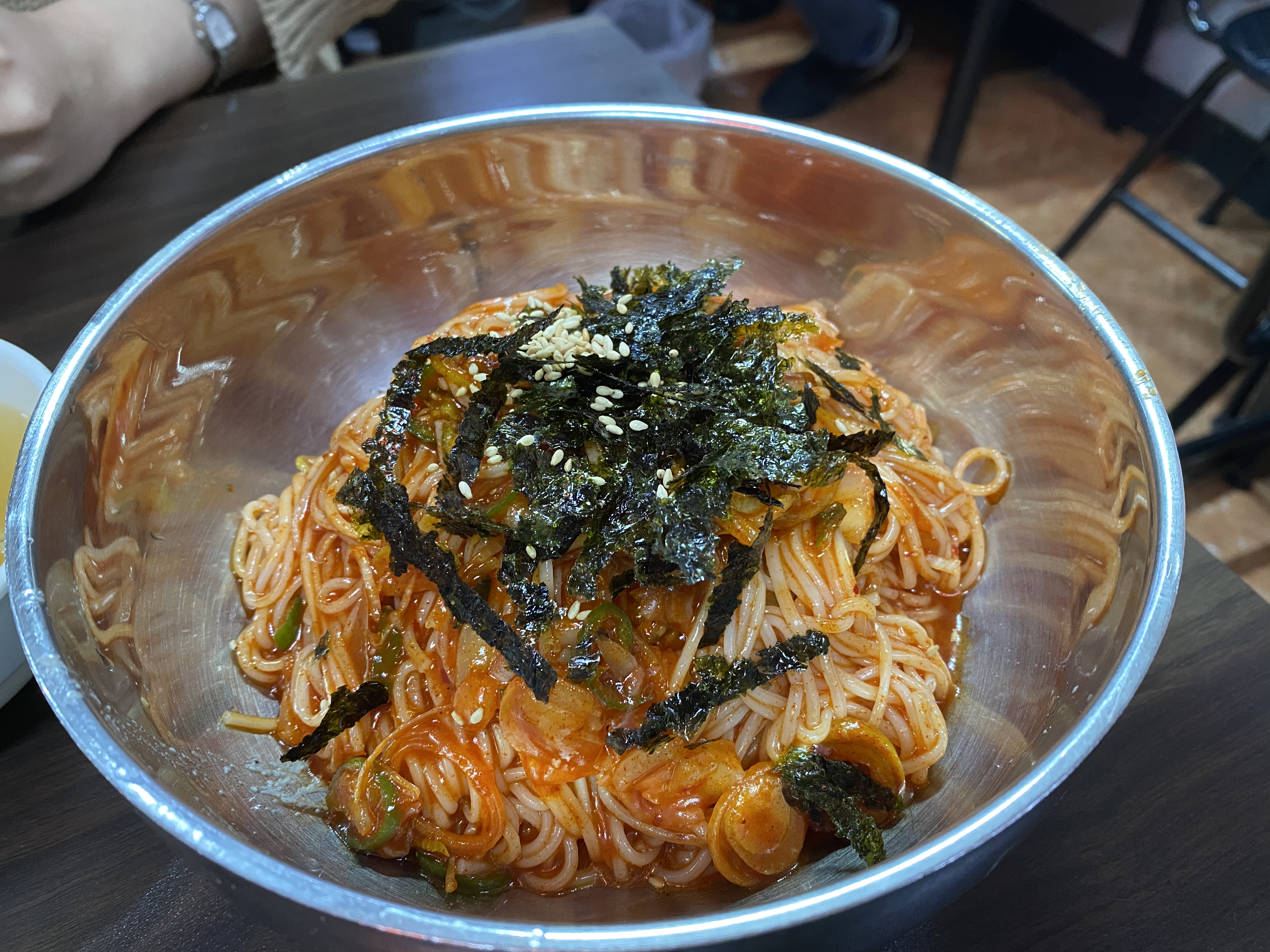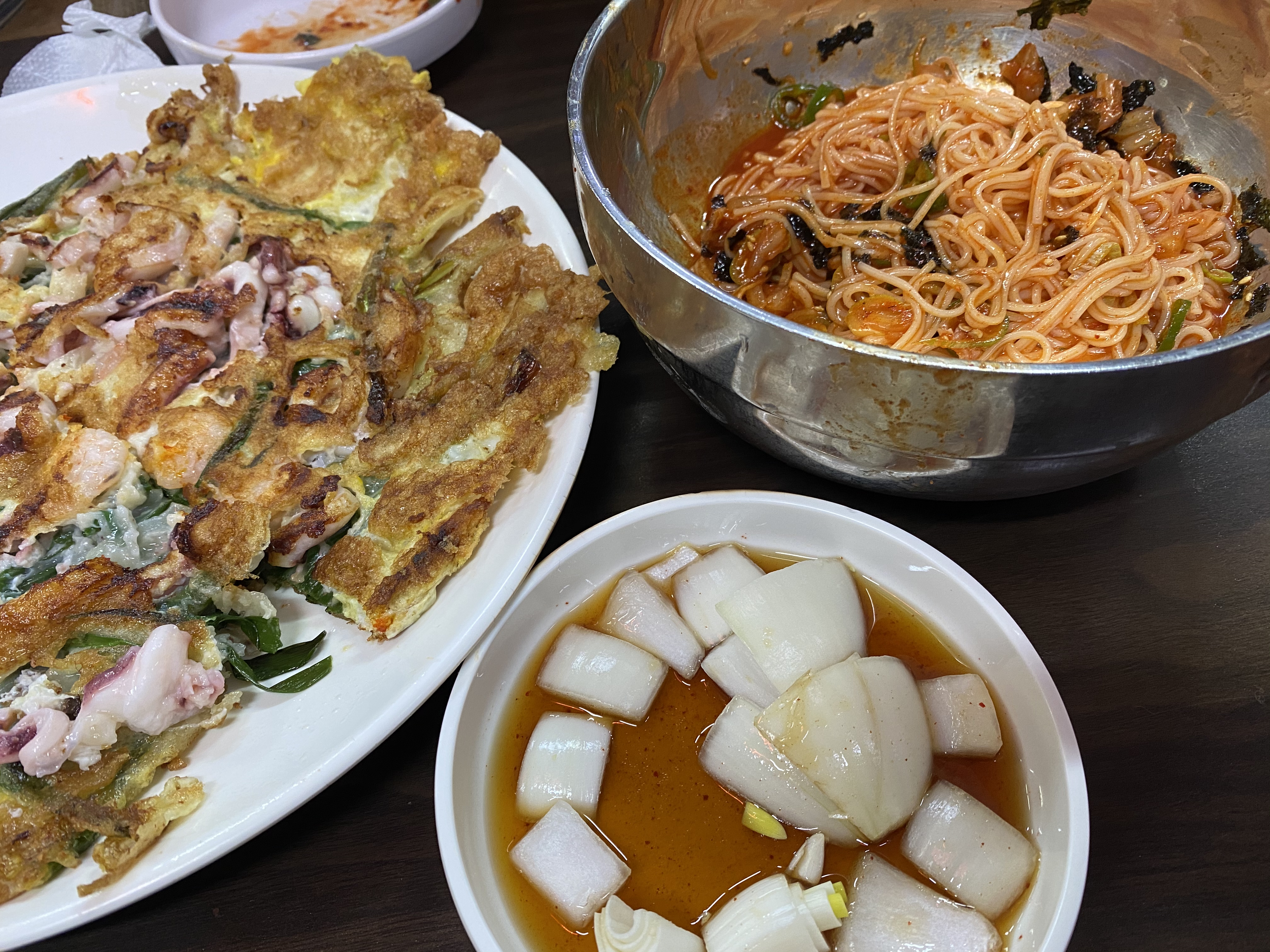 들깨랑 비빔국수 그리고 해물파전을 시켰다.